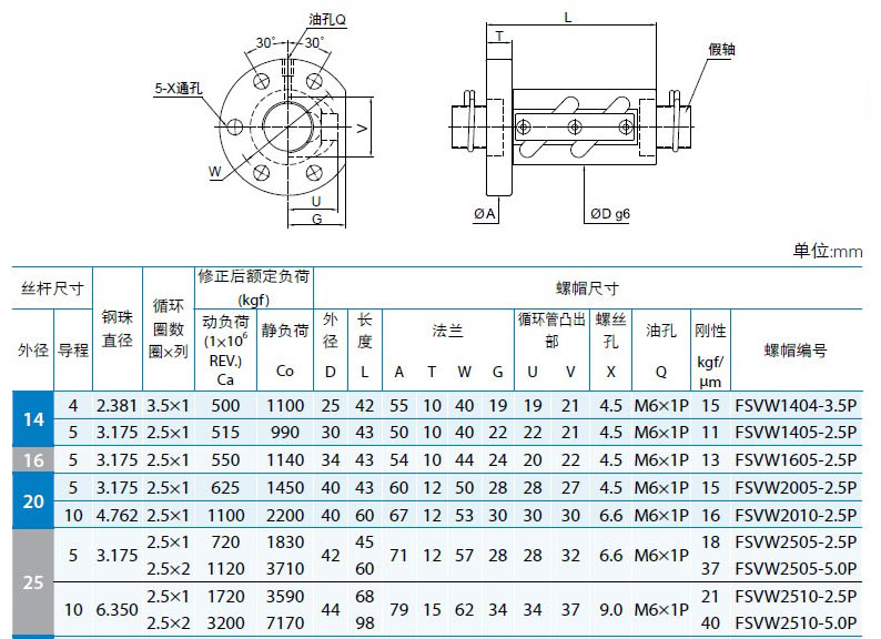• 银泰PMI滚珠丝杆转造级外循环系列系列FSVW1605-2.5P